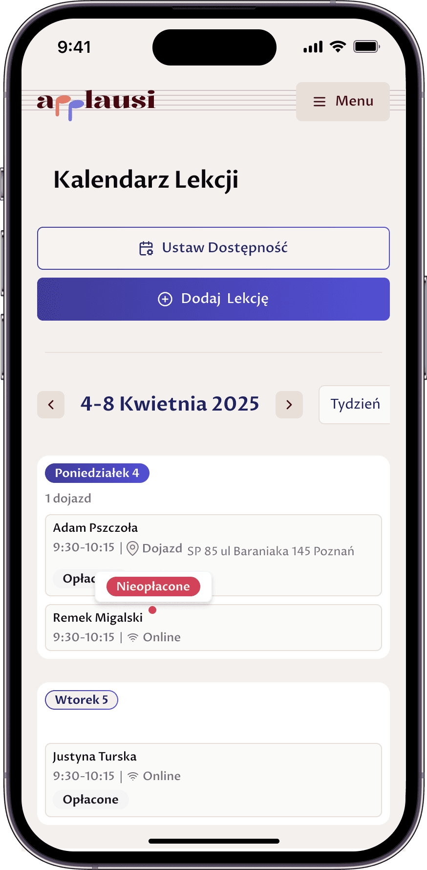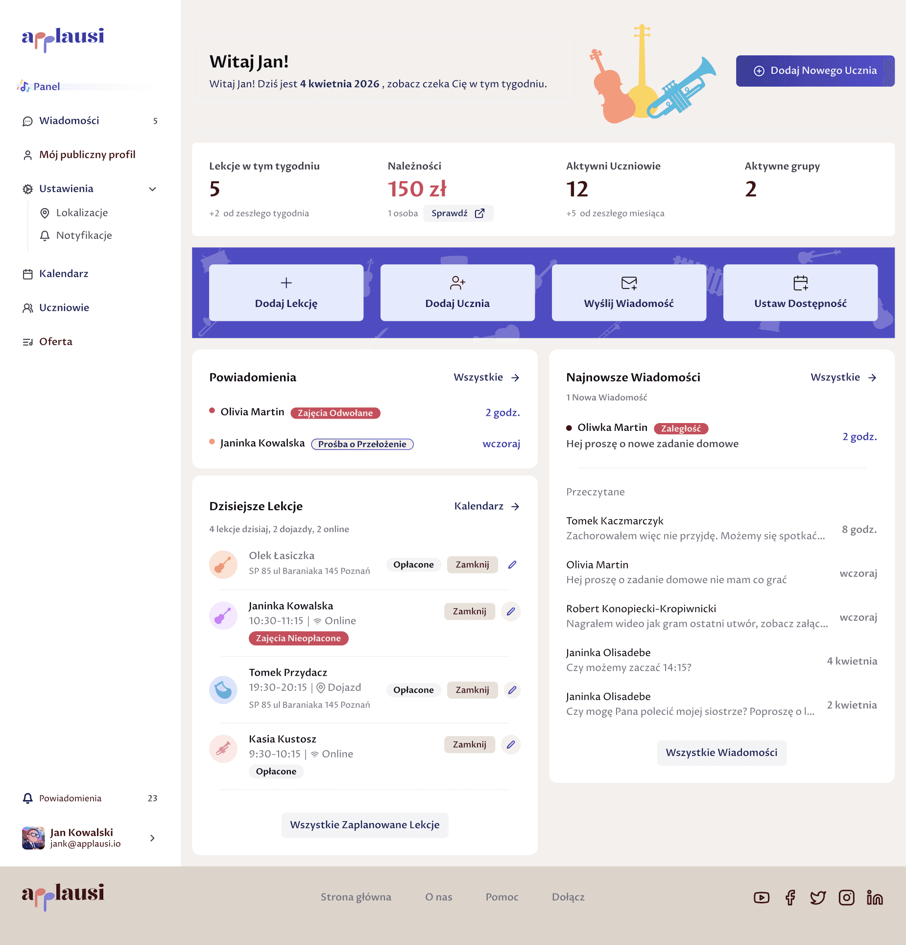 Stwórz bazę swoich uczniów i wprowadź pierwsze lekcje do kalendarza