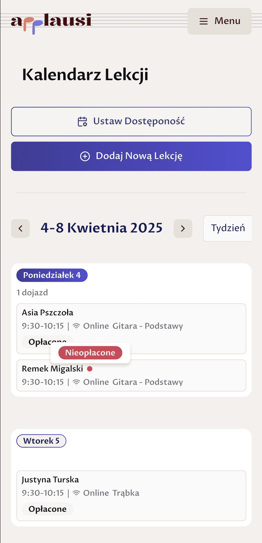 Twórz grafik, zarządzaj zmianami i przypominaj o nadchodzących lekcjach.