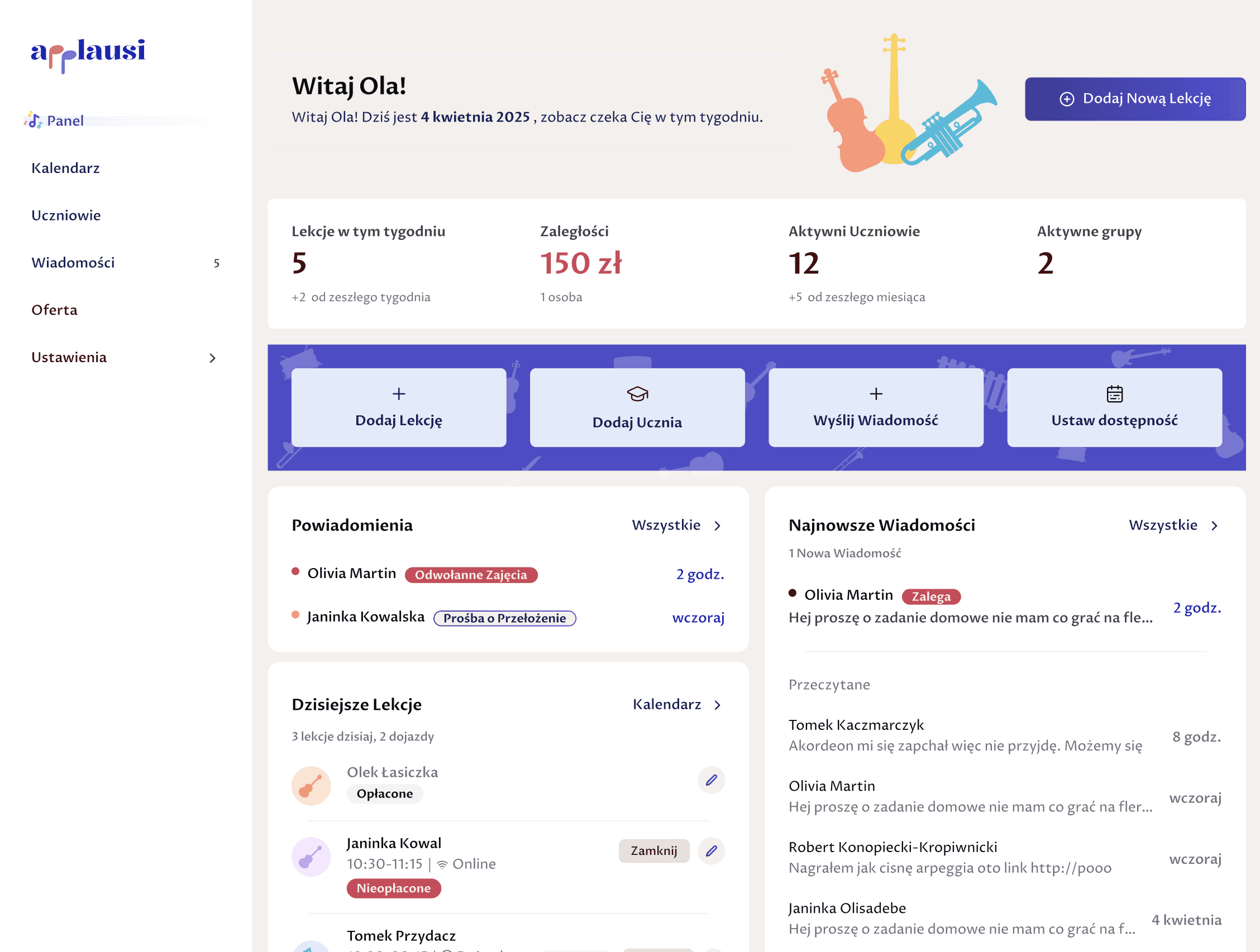 Applausi daje Ci dokładnie takie korzyści jakich potrzebujesz: od zarządzania uczniami po komunikację i pozyskiwanie nowych uczniów i wiele więcej!